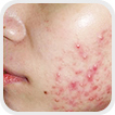 痘印、痘坑明显,面容红肿